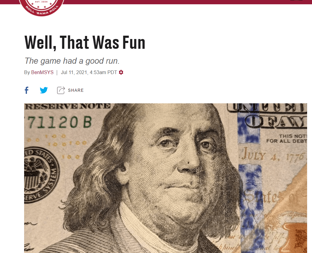 Now the Name, Image, and Likeness rules are going to wreck the whole damn thing. Dammit.